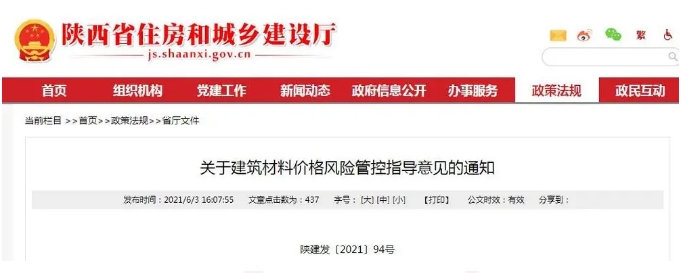 | 建筑材料價格風(fēng)險如何管控,陜西省住建廳發(fā)布指導(dǎo)意見 |