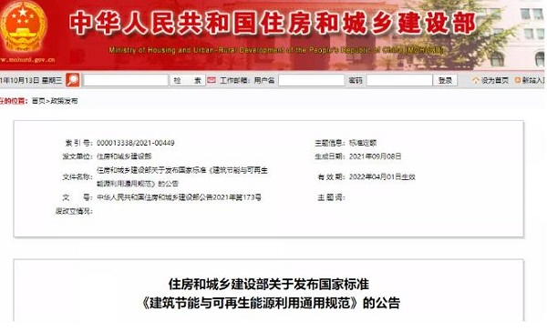 近日,住房和城鄉(xiāng)建設部發(fā)布國家標準《建筑節(jié)能與可再生能源利用通用規(guī)范》的公告。