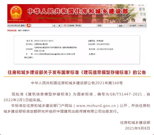 國家標(biāo)準(zhǔn)《建筑信息模型存儲標(biāo)準(zhǔn)》發(fā)布