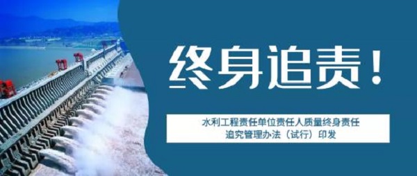 為加強(qiáng)水利工程質(zhì)量管理,強(qiáng)化質(zhì)量終身責(zé)任,提高質(zhì)量責(zé)任意識(shí),保證水利工程建設(shè)質(zhì)量,水利部組織編制了《水利工程責(zé)任單位責(zé)任人質(zhì)量終身責(zé)任追究管理辦法(試行)》(以下簡(jiǎn)稱《辦法》),強(qiáng)調(diào)水利工程質(zhì)量終身責(zé)任管理實(shí)行書(shū)面承諾和竣工后永久性標(biāo)識(shí)等制度。