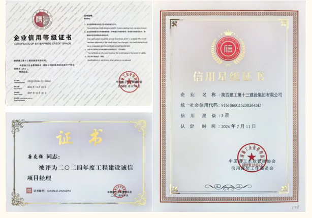 近年來(lái),陜建十三建集團(tuán)高度重視企業(yè)信用建設(shè),堅(jiān)持把誠(chéng)信經(jīng)營(yíng)作為企業(yè)高質(zhì)量發(fā)展的基石,秉承“敬業(yè)守信、勇?lián)?zé)任、建造精品、追求卓越”的企業(yè)精神,在堅(jiān)定屬地市場(chǎng)的同時(shí)持續(xù)開拓域外市場(chǎng),不斷壯大主業(yè)規(guī)模,樹立良好的口碑和品牌形象;踐行“四新”戰(zhàn)略,拓展新領(lǐng)域、新業(yè)態(tài),助推企業(yè)轉(zhuǎn)型升級(jí)和高質(zhì)量發(fā)展;加強(qiáng)工程項(xiàng)目精細(xì)化管理,守好安全底線,嚴(yán)把質(zhì)量關(guān),推動(dòng)項(xiàng)目實(shí)現(xiàn)優(yōu)質(zhì)履約;提升內(nèi)控工作水平,強(qiáng)化制度建設(shè)與風(fēng)險(xiǎn)防控,保障企業(yè)規(guī)范平穩(wěn)運(yùn)行。集團(tuán)先后榮獲延安市建筑業(yè)AAA級(jí)信用企業(yè)、陜西省信用協(xié)會(huì)信用建設(shè)先進(jìn)單位。
